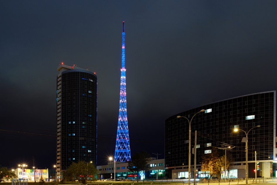 Сегодня, 1 сентября, в 21:00 телевышка в столице Якутии поочередно окрасилась в цвета флага Архангельской области