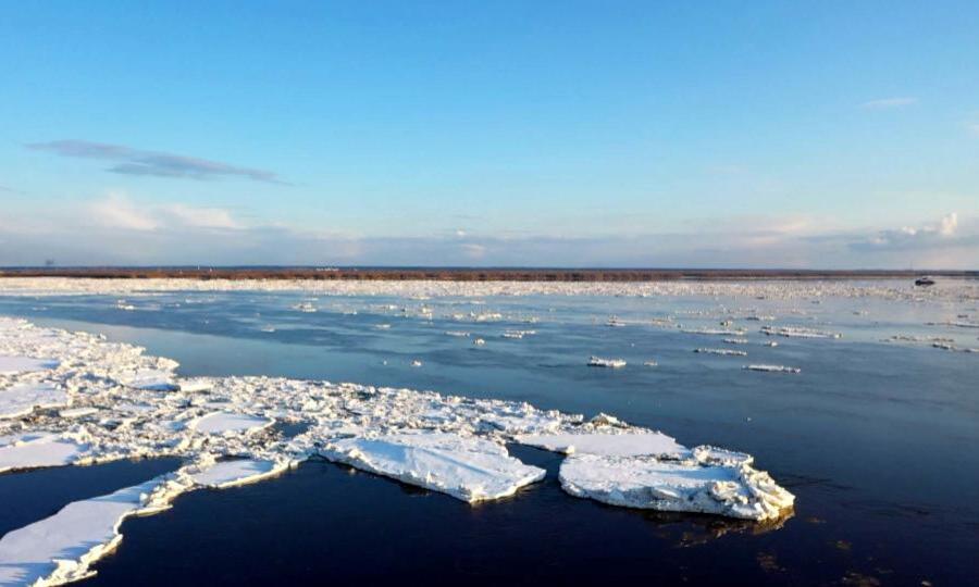В Корабельном рукаве Северной Двины толщина льда на 13 см меньше, чем в прошлом году. При этом высота снега на льду во всех рукавах больше усредненных значений на 4-15 сантиметров.